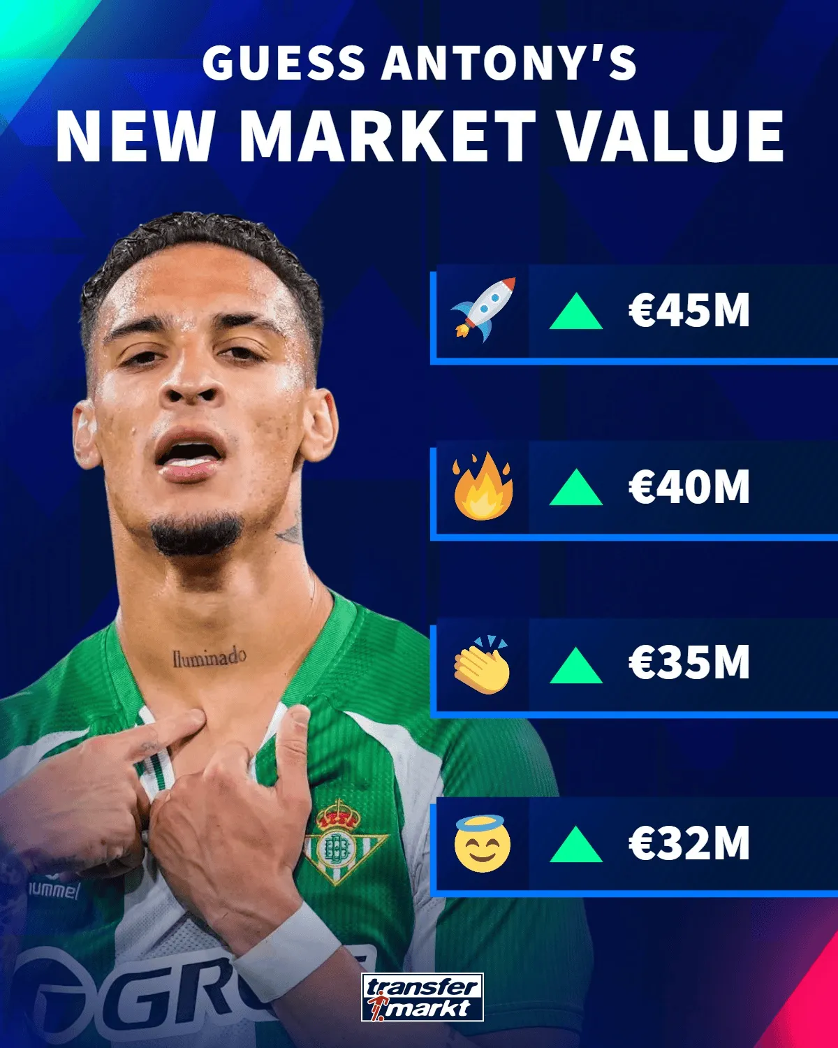 德州扑克-德转预热安东尼身价:确定上涨,最高可达4500万欧元