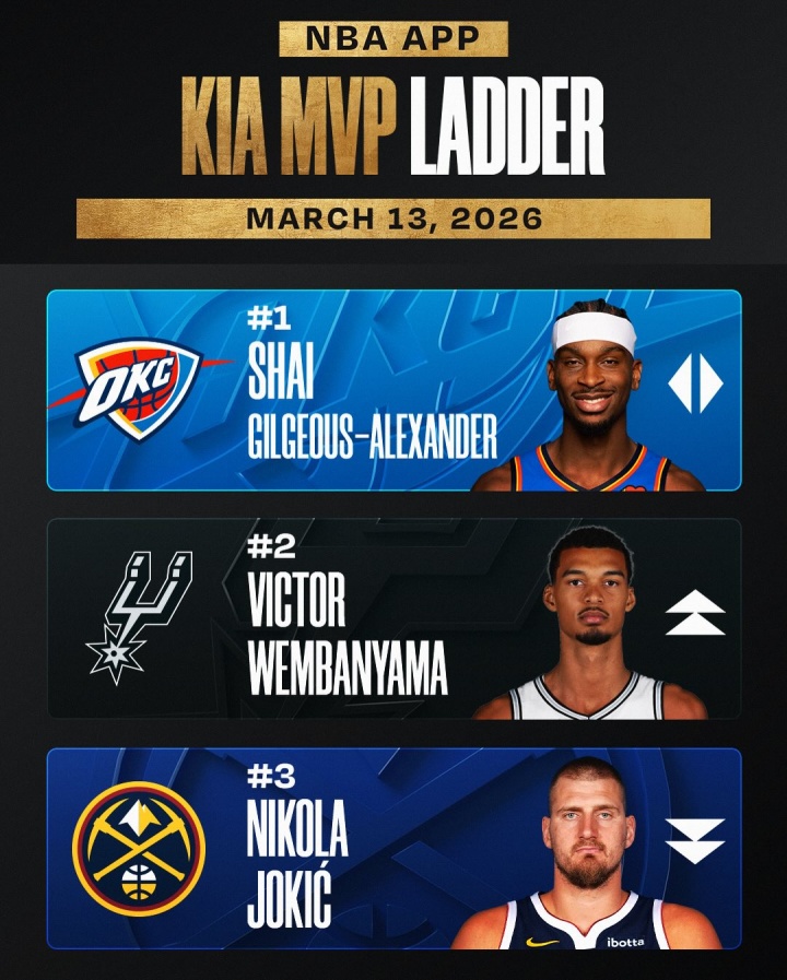 03月13日讯 NBA官方公布最新一期的常规赛MVP榜单——亚历山大持续领跑;文班亚马反超约基奇升至第二;东契奇连升两位到第四;伦纳德上榜:1、谢伊·吉尔杰斯-亚历山大 (雷霆)上期排名第1赛季至今场均31.7分4.5篮板6.6助攻2、维克托·文班亚马 (马刺)上期排名第4赛季至今场均24...